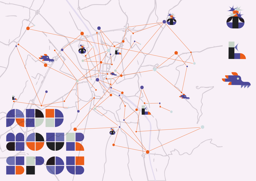 Kronberger & Kronberger are working on ORBYTE, an interactive city map of Salzburg inspired by critical mapping, which collects and visualizes local, personal/non-public, and lost/marginalized knowledge about the city. The map transfers the encyclopedic principle to urban space and questions canonized knowledge bases.