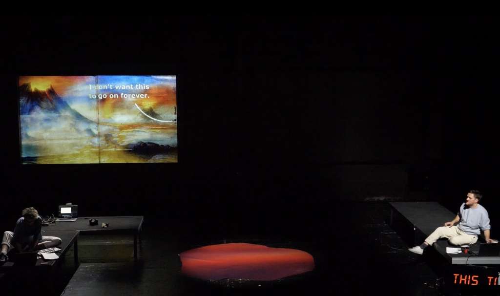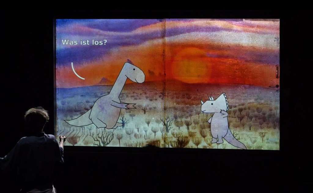 Die Dinosaurier sind ausgestorben. Und gerade deshalb können sie uns erzählen, was es bedeutet, zusammenzuhalten, wenn die Welt untergeht. Wieso fühlen wir uns manchmal, als würde ein Asteroid einschlagen? Und wie können wir uns auch in Extremsituationen umeinander kümmern? »S.A.D.« beschäftigt sich mit Freundschaft und Fürsorge im Kontext persönlicher und globaler Krisen. In einem aufrichtigen, aber auch humorvollen Dialog zwischen den Performer:innen auf der Bühne und den Dinosauriern auf der Leinwand werden persönliche Sprachnachrichten und live gesungene Texte mit Zitaten aus Popkultur und Zeitgeschichte verwoben.